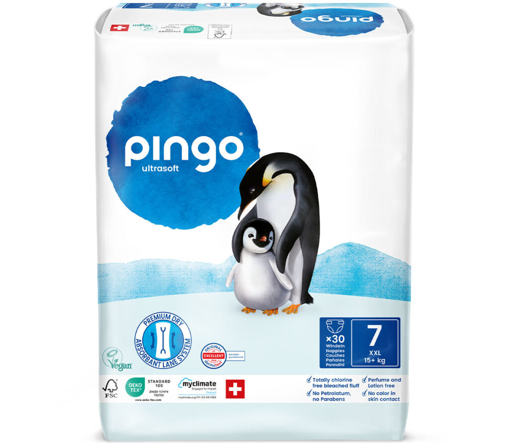 Non! Toutes les couches jetables ne sont pas un désastre pour l'environnement! Fabriquées en Suisse, et forte des labels écologiques Forêt Responsable FSC, Myclimate et Naturemade, les couches Pingo respectent autant l’environnement que la peau délicate de bébé.Très douces, très absorbantes, hypoallergéniques, ne générant pas d'irritation, les parents les aiment également pour leur composition: cellulose broyée non blanchie au chlore, pulpe de bois, amidon de maïs, sans latex, sans lotion, sans colorant, sans parfum ni émulsifiant PEG.Convaincus, les consommateurs ont d'ailleurs élu les couches jetables Pingo produit écologique de l'année!