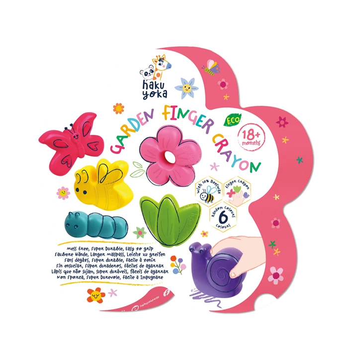 Le set de crayons de cire pour doigts jardin est un incroyable jeu pour l’enfance.Les six motifs colorés, inspirés du jardin, encouragent les tout-petits à créer de magnifiques œuvres d'art. Grâce à leur fabrication spéciale, ces crayons ne laissent aucune trace sur les mains des jeunes artistes. Convient aux enfants à partir de 18 mois.