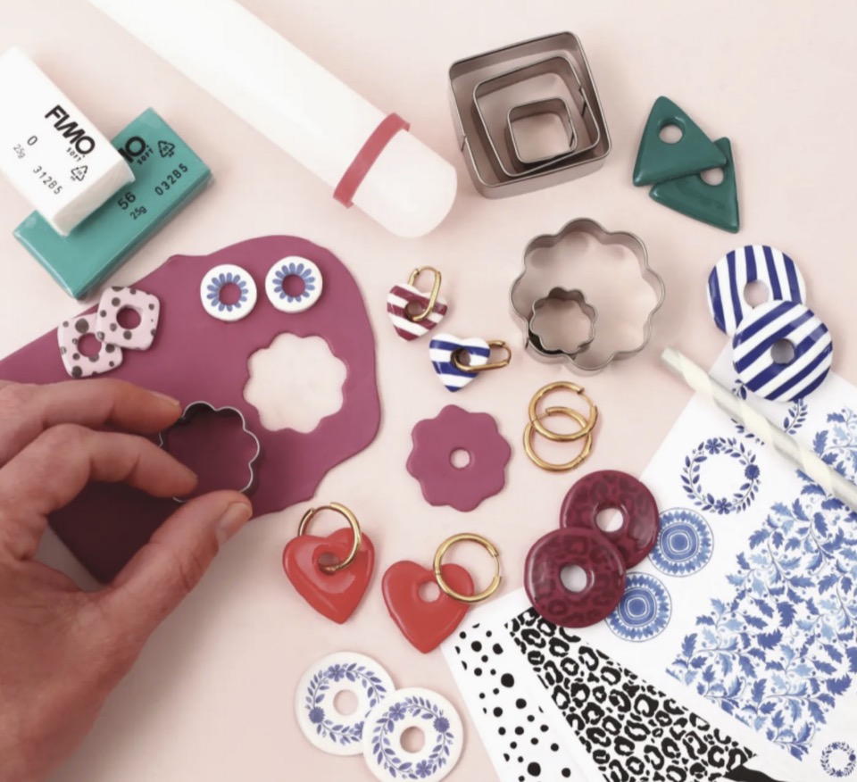 Slab Fimo en objets ou bijoux selon vos envies. Utilisez vos plaques pour faire des boucles d'oreilles, des bagues, des pendentifs...