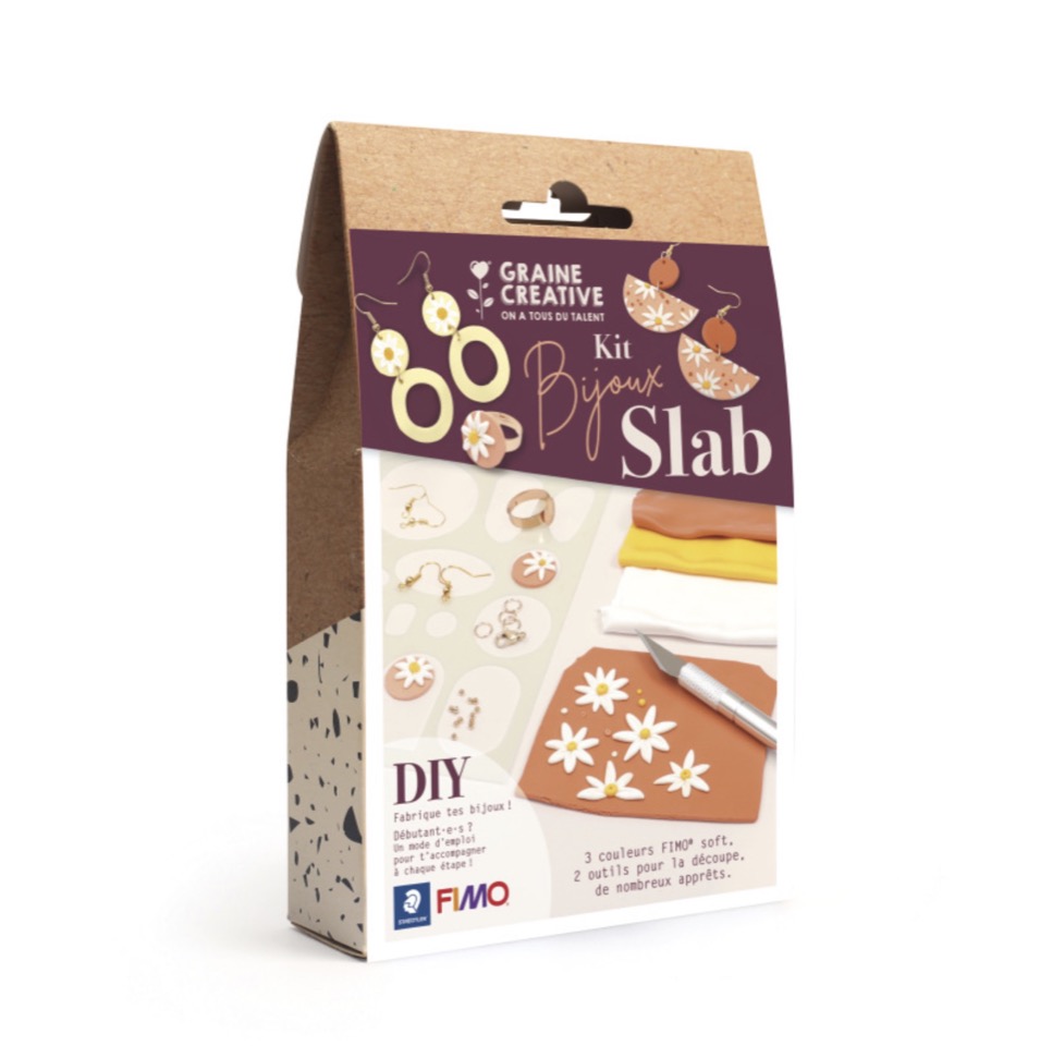 Découvrez notre Kit FIMO GRAINE CREATIVE bijoux Slab Fleuri de chez Graine Créative, pour créer des bijoux en pâte polymère!