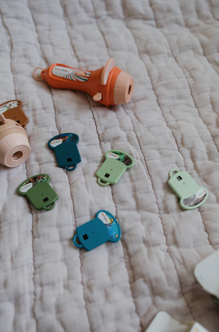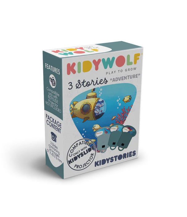 KIDYSTORIES est un ensemble d’histoires conçu pour être utilisé avec la torche à histoires KIDYSLIDE. Chaque set d’histoires transporte les enfants dans un monde d'imagination et d’aventure, où ils peuvent rêver, apprendre et développer leur créativité. Ces histoires, accompagnées d'illustrations réalisées en Belgique, sont parfaites pour enrichir la routine du coucher ou pour des moments de détente créative.Compatible uniquement avec le projecteur KIDYSLIDE non inclus.
