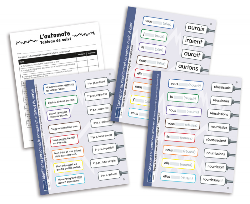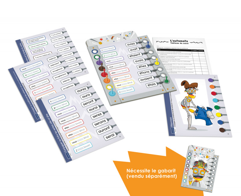 Jeu individuel d'association destiné aux élèves du 2e cycle du primaire 5 et 6H ciblant les habiletés de conjugaison. Le joueur doit assembler les fils dans la tête du robot pour programmer ses actions.Le gabarit (incluant les pions) est vendu séparément.