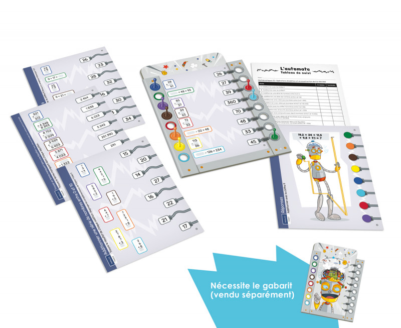 L’automate – Mathématique 2.2 : Numérotation de 0 à 100 000 est un jeu individuel d’association destiné aux élèves du 2ème cycle du primaire : 5-6 Harmos ciblant différentes habiletés de numération avec des nombres de 0 à 100 000. Le joueur doit assembler les fils dans la tête du robot pour programmer ses actions.Le gabarit (incluant les pions) est vendu séparément.