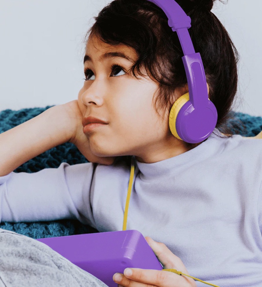 Avec sa double prise jack, deux casques audio peuvent se brancher sur une même Fabrique à Histoires ou FLAM, pour profiter de moments d’écoute à plusieurs.