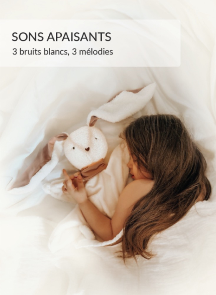 myHummy Lapin écru-gris: bruits avec capteur de sommeil, lumière, mélodies apaisantes et vibrations Le lapin ronronnant 5en1 est l'ami des tout-petits et l'aide des parents. Il a de longues oreilles douces et un ventre moelleux. Il sera un compagnon idéal pendant de nombreux mois de la vie de bébé.Les nouveau-nés adorent s'endormir avec myHummy, car le son qu'il émet est similaire à celui du ventre de leur maman. Il l'associe à la chaleur et à un monde sûr. Ils se calment, s'apaisent et s'endorment plus rapidement.Le ventre du lapin myHummy peut être doucement éclairé par une lampe en deux couleurs chaudes : blanc ou rouge.Le myHummy 5in1 émet 3 bruits : le blanc, les vagues de la mer et le bruit du ventre de la maman. Les bébés adorent dormir avec eux : ils se calment plus vite et s'endorment paisiblement. Lorsqu'il est éteint, myHummy passe en mode capteur de sommeil - le mécanisme se remet en marche lorsque le bébé commence à pleurer ou qu'il y a du bruit dans l'environnement.myHummy joue également 3 belles mélodies pour aider les enfants plus âgés à se calmer avant l'heure du coucher.En outre, le mécanisme de myHummy émet des vibrations qui rappellent les battements du cœur pour donner à l'enfant l'impression d'être dans les bras de sa mère.myHummy 5in1 est alimenté par chargement.Ce que myHummy 5in1 peut faire : - 3 bruits qui détectent le sommeil : bruit blanc, vagues de la mer et bruit du ventre de la maman- 3 mélodies apaisantes- 30 minutes de lecture- vibrations semblables à des battements de cœur- lumière bicolore qui illumine son petit ventre- chargement par USB- Câble USB de type C inclusInformations :- Hauteur de la mascotte : 30 cm- Largeur de la mascotte : 20 cm- Composition de la mascotte : 90% polyester, 10% coton