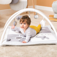 Le tapis d'éveil NATTOU avec ses multiples activités différentes invite au jeu et à l'exploration (papier crissant, hochets, miroirs, ...).Le  bébé peut ainsi se créer un petit monde à lui. Toutes les activités invitent au développement et à l'éveil de bébé.