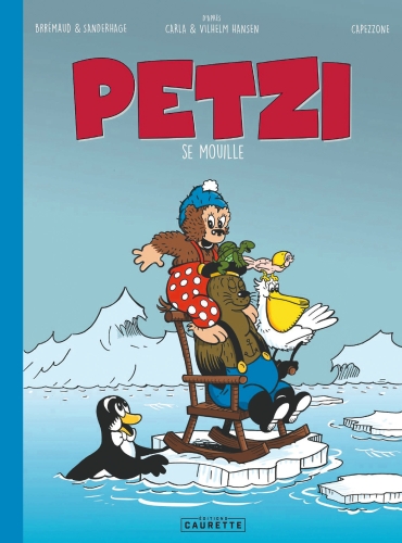 À propos de Petzi en SuisseMais que font donc ces rondins de bois en plein milieu de l’océan ?! Pour le découvrir, Petzi et ses amis vont s’embarquer dans une nouvelle aventure trépidante, accompagnés par un drôle de capitaine ! Et ils auront bien besoin de toute l’aide disponible pour résoudre les défis qu’ils vont devoir affronter afin de faire du pôle Sud un endroit où il fait bon vivre ensemble. Cap au sud pour une expédition rafraîchissante !En presque 75 ans de balades à travers le monde (le début de ses aventures date de 1951 !), le plus fameux des oursons de toute la bande dessinée ne s’était encore jamais rendu en Suisse ! Heureusement, Thierry Capezzone (au dessin) et Yvan Molinaro (au scénario) viennent de réparer cette anomalie ! À propos de la série PetziPetzi est une série animalière pour enfant créé au Danemark en 1951 par Vilhelm et Carla Hansen. Personnage culte dans de nombreux pays d’Europe, ses aventures sont parues successivement chez Casterman, puis Paquet. Elle a été traduite en plus de dix langues.Les éditions Caurette relancent la série Petzi en publiant à la fois des nouveautés dessinées par Thierry Capezzone, auteur français installé depuis de nombreuses années au Danemark, et également les albums de la série ‘historique’, au rythme de 3 albums par an (1 nouveauté et 2 rééditions), dans un format assurant la continuité avec ses anciennes éditions.À propos de Vilhelm et Carla HansenNé au Danemark, Vilhelm Hansen se forme à la lithographie, puis travaille comme illustrateur. Sa première bande dessinée, Firlingerne (Les Quadruplés), paraît dans le magazine "Hjemmet". Sa femme, Carla Hansen, est scénariste de bande dessinée. En 1951, elle écrit à son mari une série animalière pour enfants, Rasmus Klump (Petzi). Celle-ci conduit rapidement au succès du couple dans le milieu du livre danois.Détails techniques