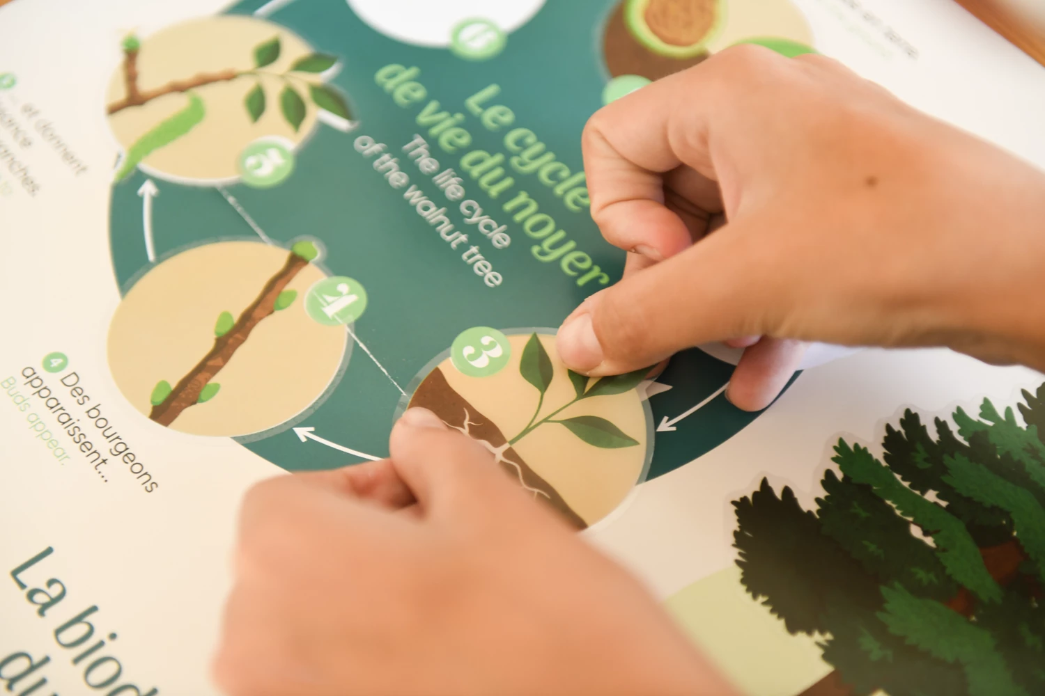 Avec ce poster géant, les enfants vont se passionner pour les arbres : quelles sont les catégories d’arbres ? Comment reconnaître les plus célèbres essences ? Quel écosystème entoure un grand arbre dans une forêt ? Les enfants collent les stickers sur le poster géant, et reconstituent ainsi une très belle affiche sur la nature.