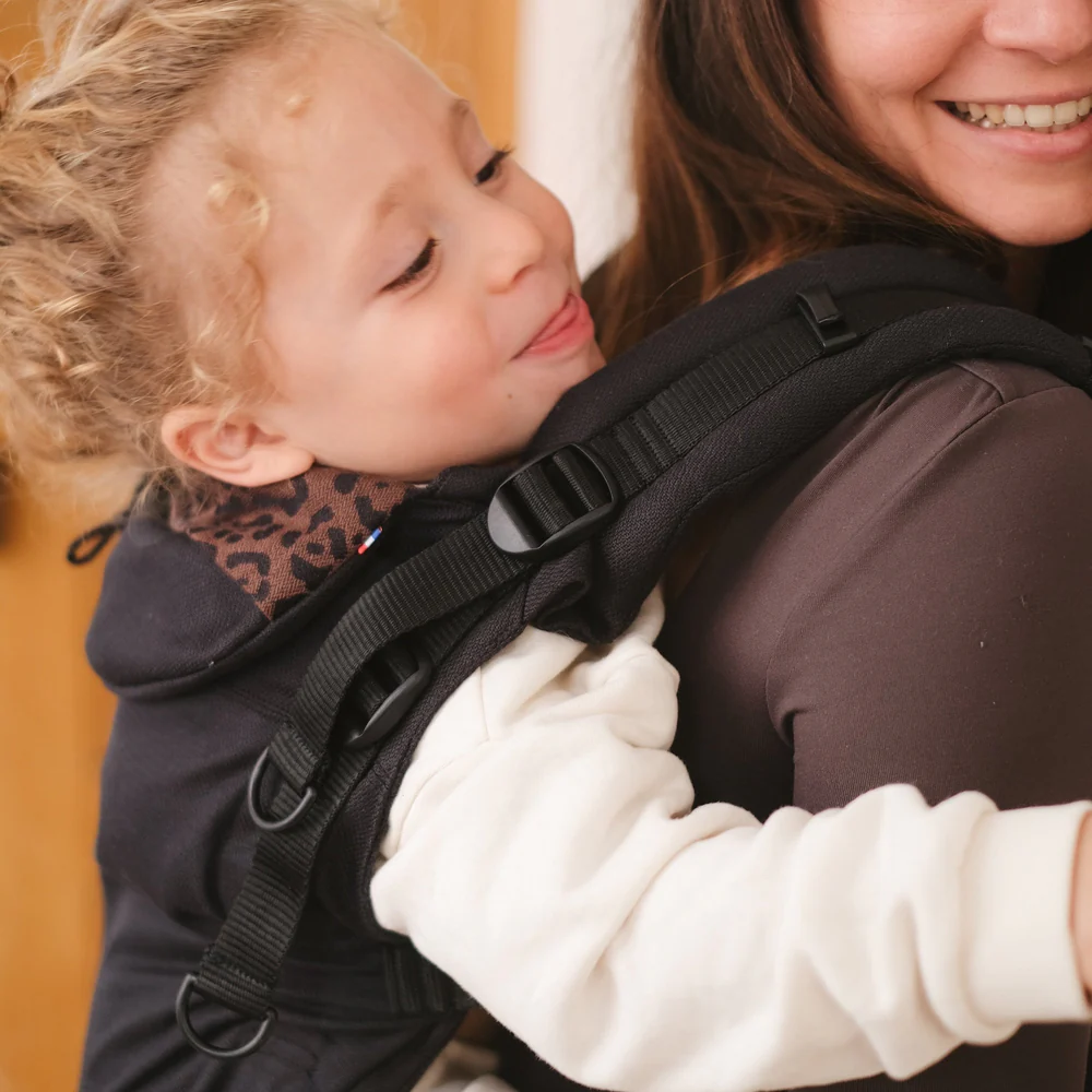 Pour les bébés qui tiennent bien assis et si vous préférez répartir le poids sur votre bassin : clipsez les bretelles sur le tablierEnvie d’explorer d’autres sensations ? Il est également possible de croiser les bretelles dans votre dos !Caractéristiques techniques :