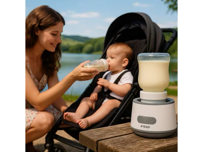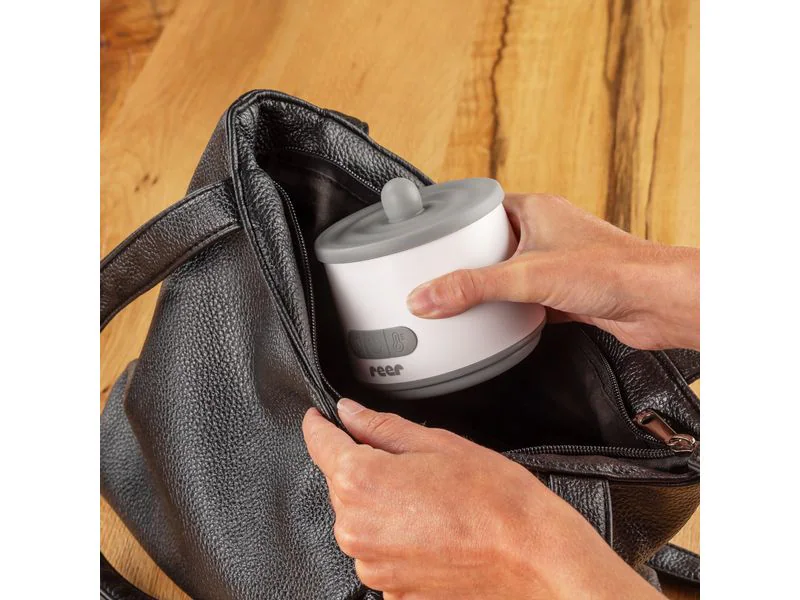 Son format pratique se glisse dans n'importe quel sac à langer ou sac à main. Il se recharge facilement via USB-C, à la maison, dans la voiture ou avec un powerbank