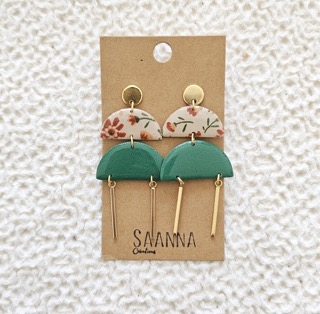 Les boucles d'oreilles de la créatrice SAANNA sont des pièces uniques réalisées en argile polymère. Les anneaux et les breloques sont en acier inoxydable.Les créations SAANNA sont pensées et réalisées par Rebecca, à La Chaux-de-Fonds, et c'est un bonheur de proposer les réalisations uniques et faites avec passion par cette jeune maman rayonnante, plein de pep's et d'énergie.Provenance des matériaux utilisés :Acier inox : FrancePâte Fimo : Allemagne