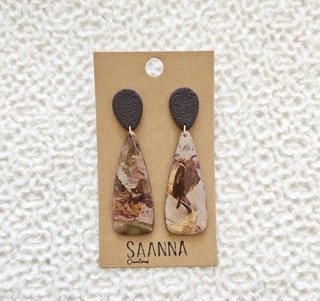 Les boucles d'oreilles de la créatrice SAANNA sont des pièces uniques réalisées en argile polymère. Les anneaux et les breloques sont en acier inoxydable.Les créations SAANNA sont pensées et réalisées par Rebecca, à La Chaux-de-Fonds, et c'est un bonheur de proposer les réalisations uniques et faites avec passion par cette jeune maman rayonnante, plein de pep's et d'énergie.Provenance des matériaux utilisés :Acier inox : FrancePâte Fimo : Allemagne