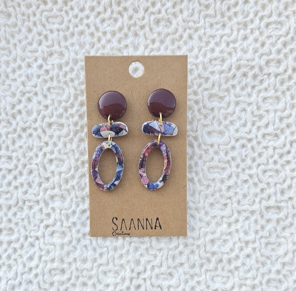Les boucles d'oreilles de la créatrice SAANNA sont des pièces uniques réalisées en argile polymère. Les anneaux et les breloques sont en acier inoxydable.Les créations SAANNA sont pensées et réalisées par Rebecca, à La Chaux-de-Fonds, et c'est un bonheur de proposer les réalisations uniques et faites avec passion par cette jeune maman rayonnante, plein de pep's et d'énergie.Provenance des matériaux utilisés :Acier inox : FrancePâte Fimo : Allemagne
