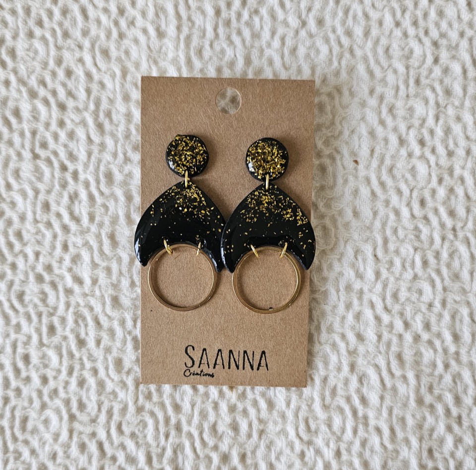 Les boucles d'oreilles de la créatrice SAANNA sont des pièces uniques réalisées en argile polymère. Les anneaux et les breloques sont en acier inoxydable.Les créations SAANNA sont pensées et réalisées par Rebecca, à La Chaux-de-Fonds, et c'est un bonheur de proposer les réalisations uniques et faites avec passion par cette jeune maman rayonnante, plein de pep's et d'énergie.Provenance des matériaux utilisés :Acier inox : FrancePâte Fimo : Allemagne