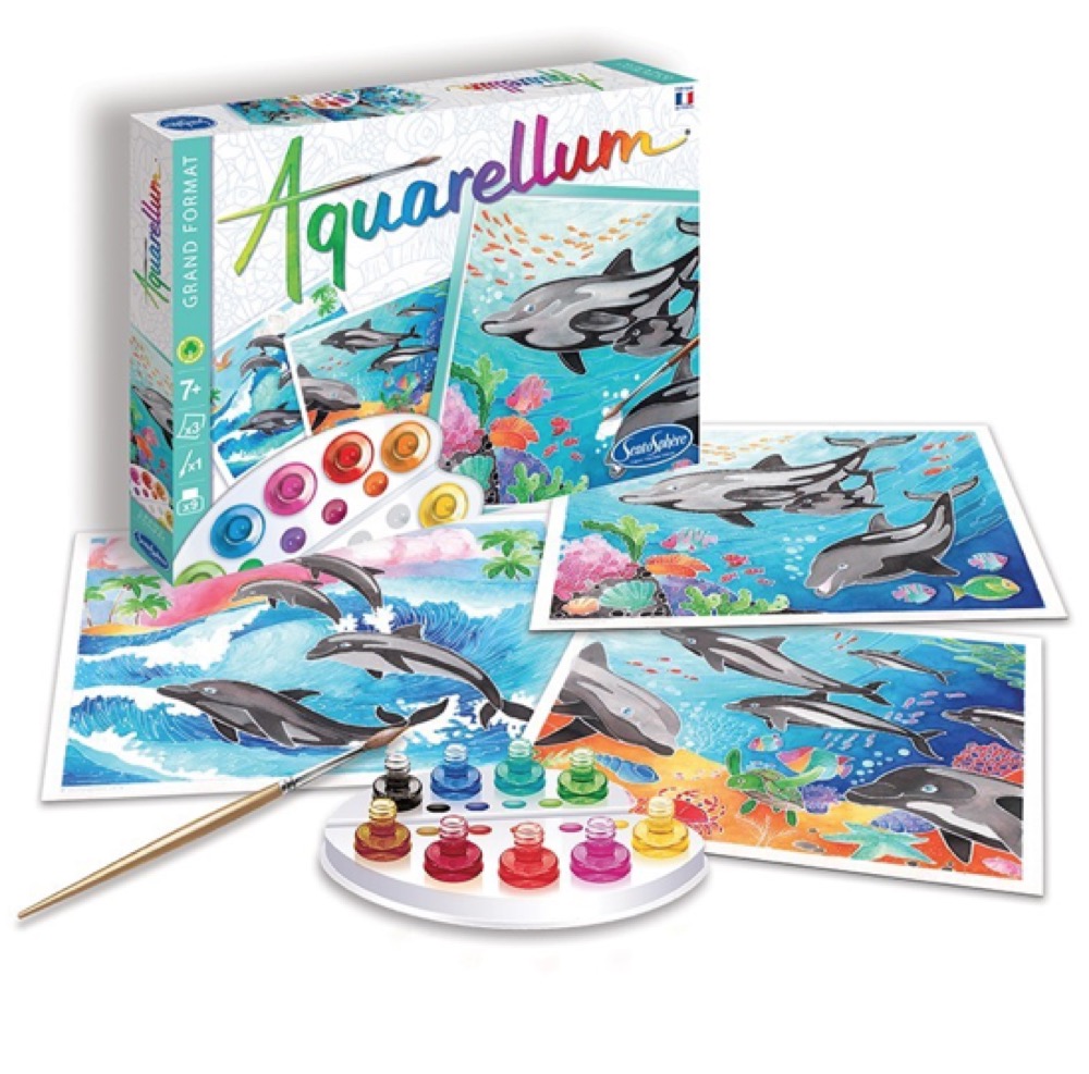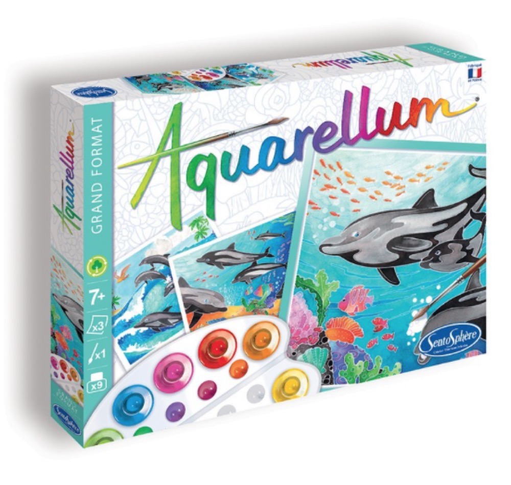 Poissons lions, papillons ou clowns… Utilisez votre palette Aquarellum et votre plus beau coup de pinceau pour mettre en couleur ces jolies illustrations d’aquariums !Aquarellum n’est pas une activité manuelle ou un jeu éducatif pour les enfants comme les autres ! Quelques gouttes de peinture suffiront pour révéler de véritables chefs-d’œuvre ! Ce jeu créatif propose une technique unique développée par Sentosphère qui permet de ne pas dépasser. En effet, les illustrations sont imprimées et serties sur papier velin épais de qualité.A chaque coup de pinceau, un magnifique tableau multicolore est révélé car la peinture n’adhère que sur certaines surfaces réservées grâce aux contours sertis ; les artistes en herbe ne peuvent donc pas déborder et le motif apparaît comme par enchantement. La technique de sertissage d’Aquarellum vous assure donc un résultat garanti, tout en stimulant l’éveil créatif, l'imaginaire et la concentration !De plus, les encres aquarelles sont non-toxiques et lavables, vos enfants pourront ainsi réaliser de jolis tableaux colorés sans aucun danger.
