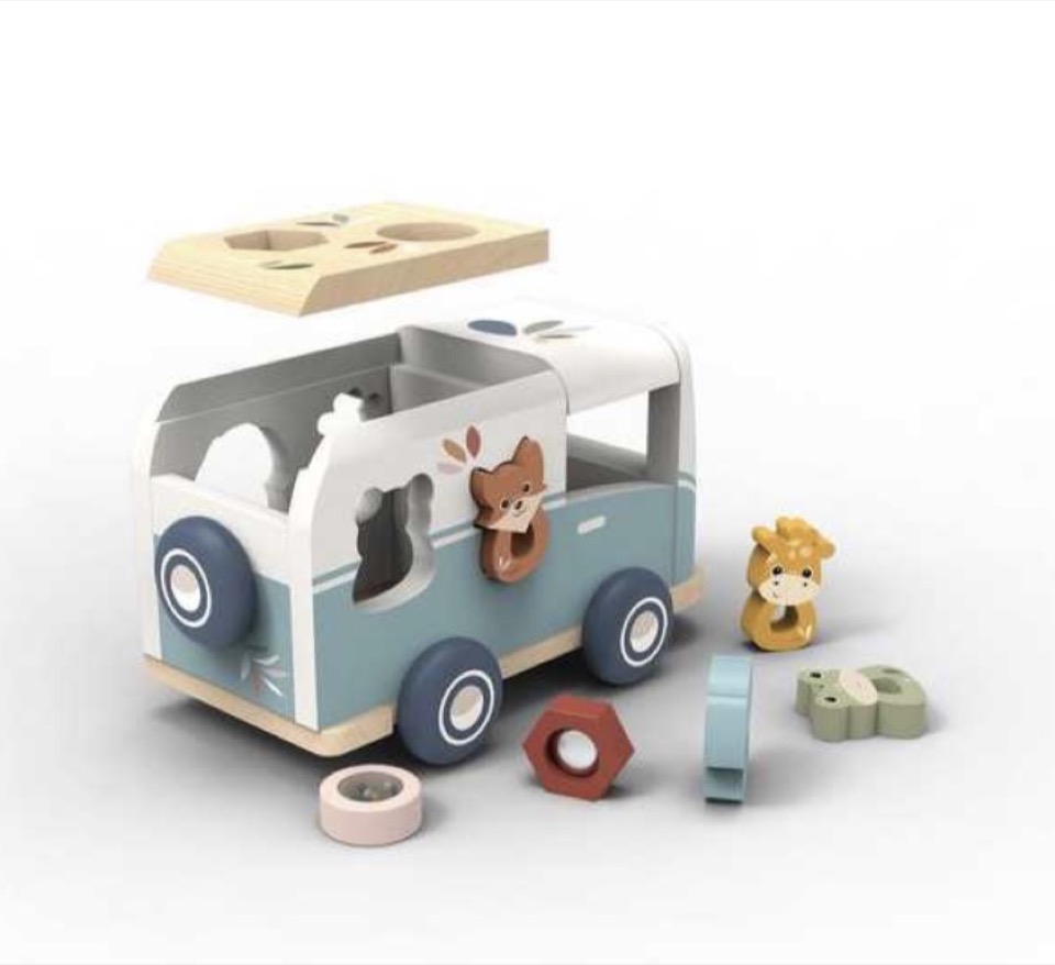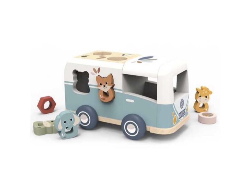 Découvrez le van des formes de Speedy Monkey, un magnifique jouet en bois pour éveiller les bébés dès 12 mois. Un superbe jouet d'éveil aux couleurs douces, parfait pour apprendre aux filles et aux garçons à trier les formes.Grâce à ce joli van, votre enfant partira à l'aventure en triant les formes. Un superbe combi avec des pièces représentant des animaux et des formes. Le toit du véhicule s'ouvre pour pouvoir récupérer les pièces facilement.Votre enfant s'amusera à encastrer les éléments et les animaux en observant les formes et les couleurs de chaque pièce. Les petites mains peuvent saisir facilement les pièces représentant un éléphant, une girafe, un renard, une grenouille... pour les faire passer dans les bonnes ouvertures.