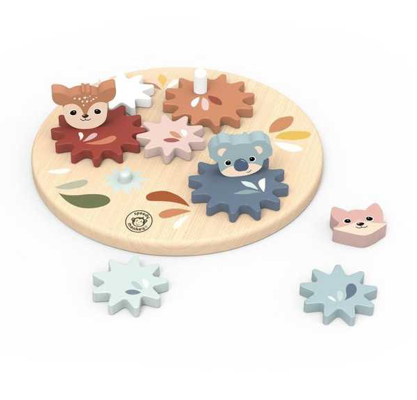Découvrez le jeu d'engrenages de Speedy Monkey, un jeu éducatif en bois pour les enfants de 2 à 5 ans. Un superbe jeu en bois pour découvrir le mécanisme d'engrenage.Votre enfant s'amusera à positionner les 7 roues crantées aux couleurs douces sur les petits piliers en bois. Puis, en actionnant la roue marron avec la poignée, il déclenchera une réaction en chaîne spectaculaire.Un beau jouet en bois à offrir en cadeau aux filles et aux garçons.